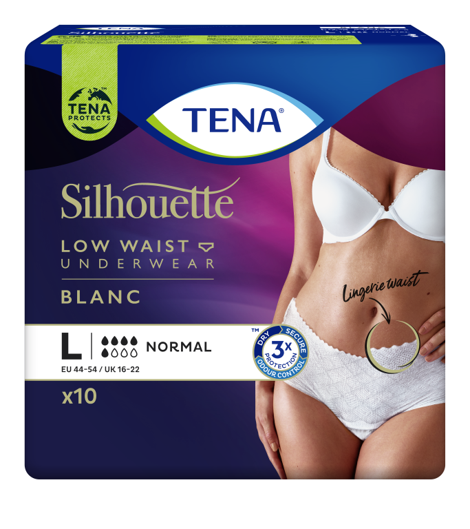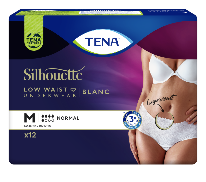 TENA Silhouette Plus Low Waist is speciaal ontwikkeld voor actieve vrouwen, die behoefte hebben aan discretie, comfort en zekerheid. Beschikbaar in de maten Medium en Large.